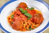 With marinara sauce and meatballs.